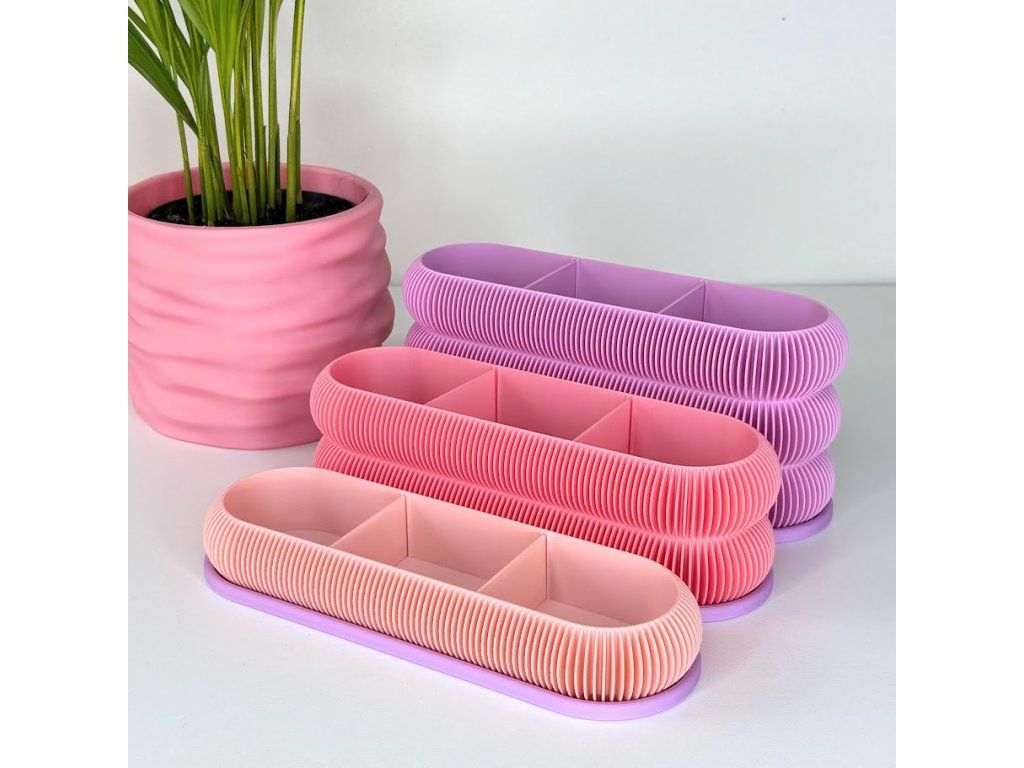 Vneste do dětského pokoje pořádek, barvy a radost s tímto stylovým organizérem FlexiDesk. Jeho jemně zaoblený tvar a výrazná žebrovaná struktura působí moderně, ale zároveň hravě – přesně tak, aby si ho děti zamilovaly na první pohled.