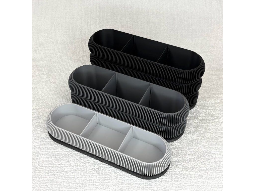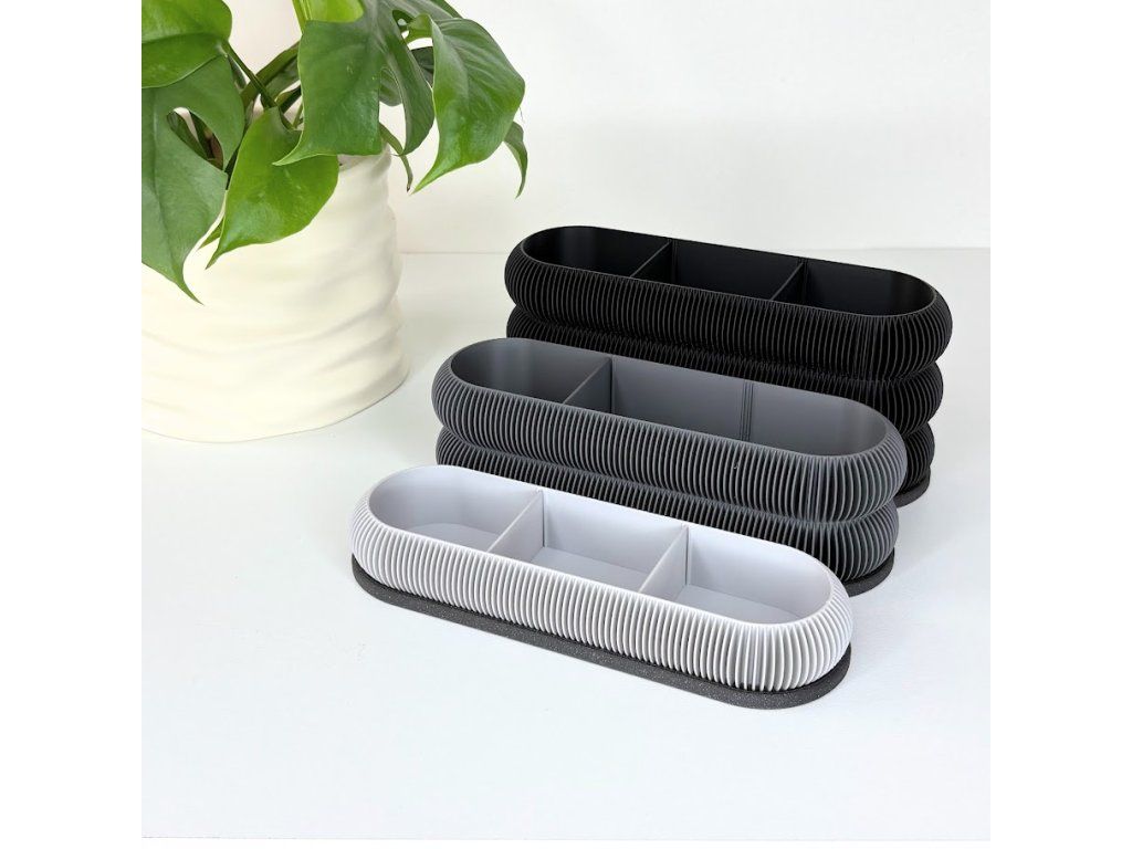 Vneste do svého pracovního prostoru harmonii a přehled s moderním organizérem, který spojuje funkčnost s designem. Jeho unikátní žebrovaný povrch dodává celku osobitý charakter a dělá z něj nejen praktického pomocníka, ale i estetický doplněk.