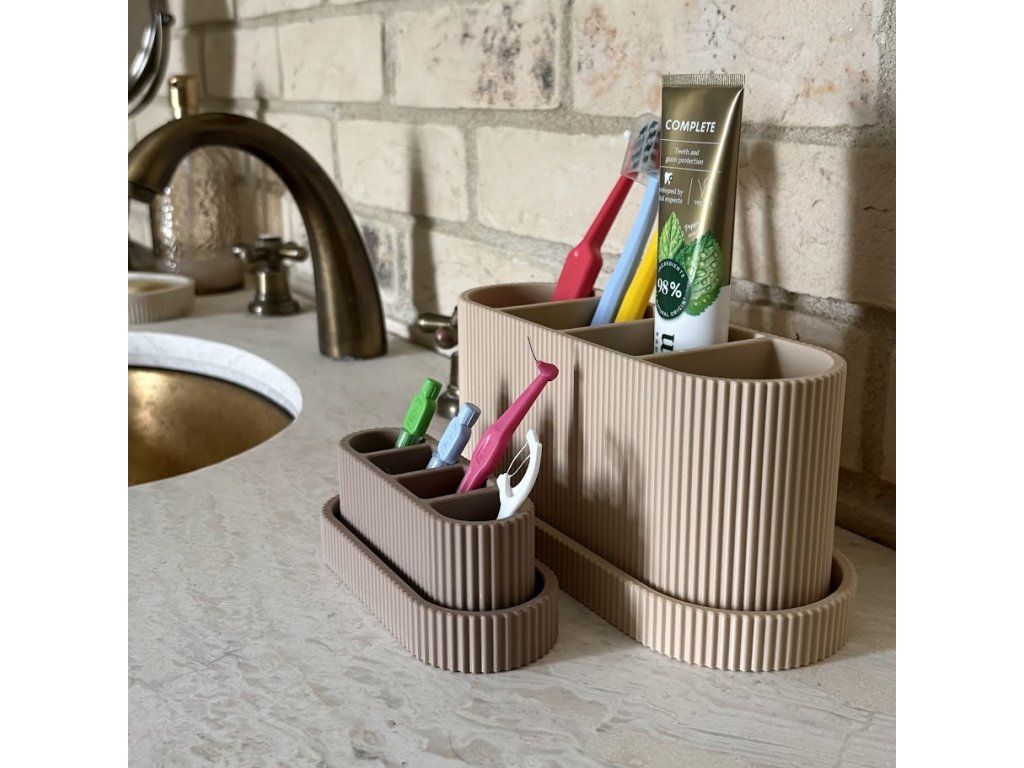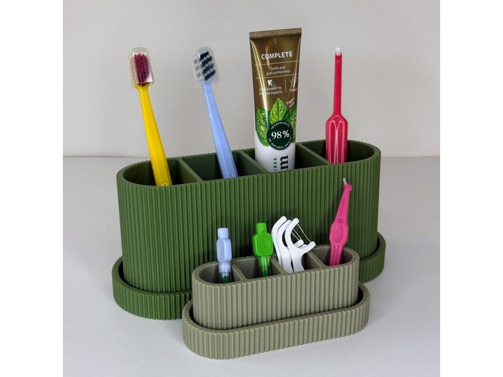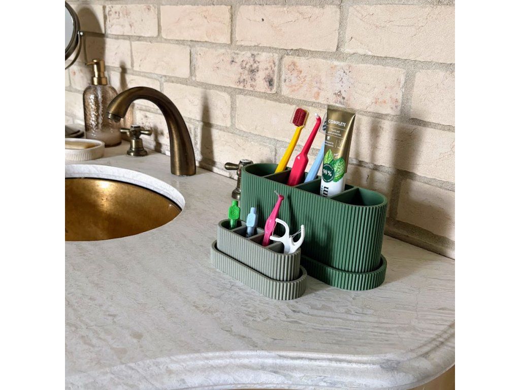 Díky praktickým přihrádkám má každý kartáček, pasta i mezizubní pomůcky své místo. Jemná 3D textura dodává produktu moderní vzhled a zároveň příjemný pocit při každodenním používání.