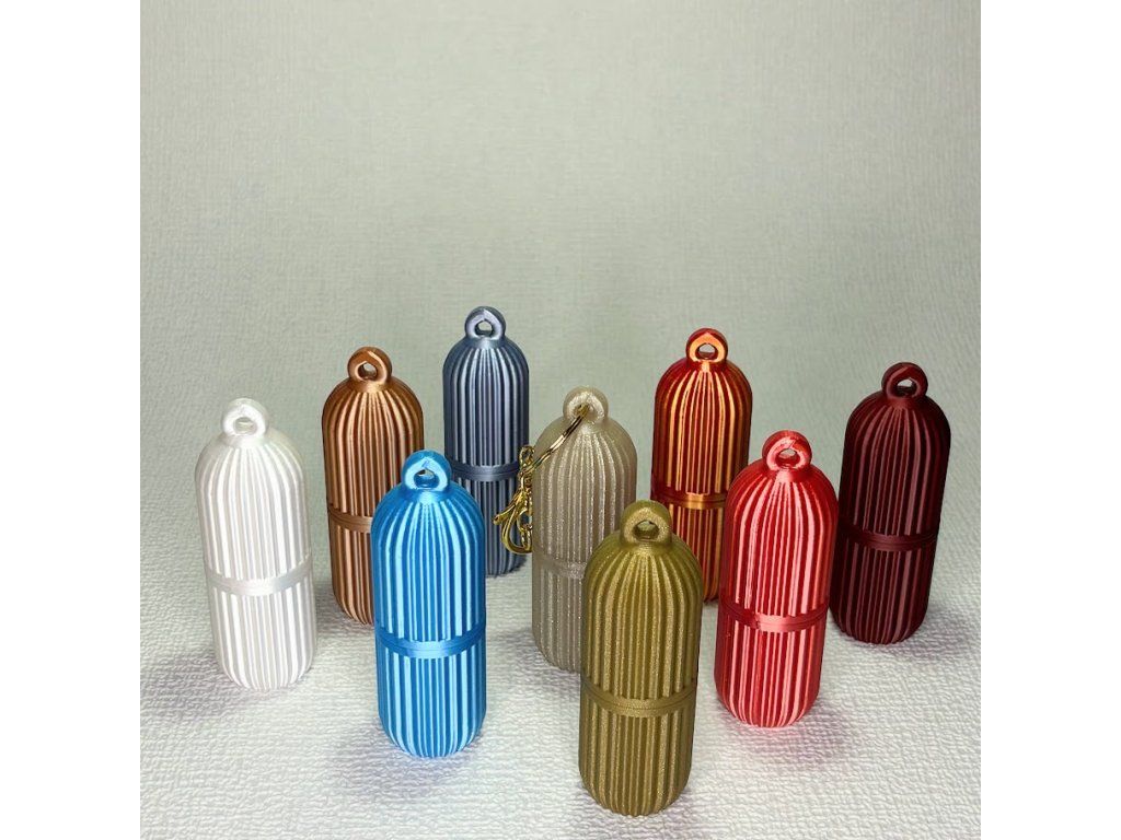 Toto designové pouzdro na balzám na rty zaujme svým jemně strukturovaným povrchem s decentním třpytem, který působí elegantně a zároveň hravě. Díky kovovému kroužku s karabinkou ho snadno připnete na kabelku, batoh nebo klíče, takže budete mít svůj balzám vždy tam, kde ho potřebujete.