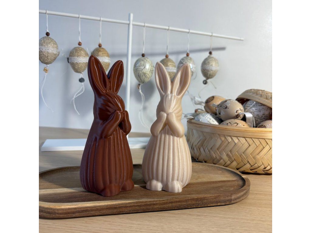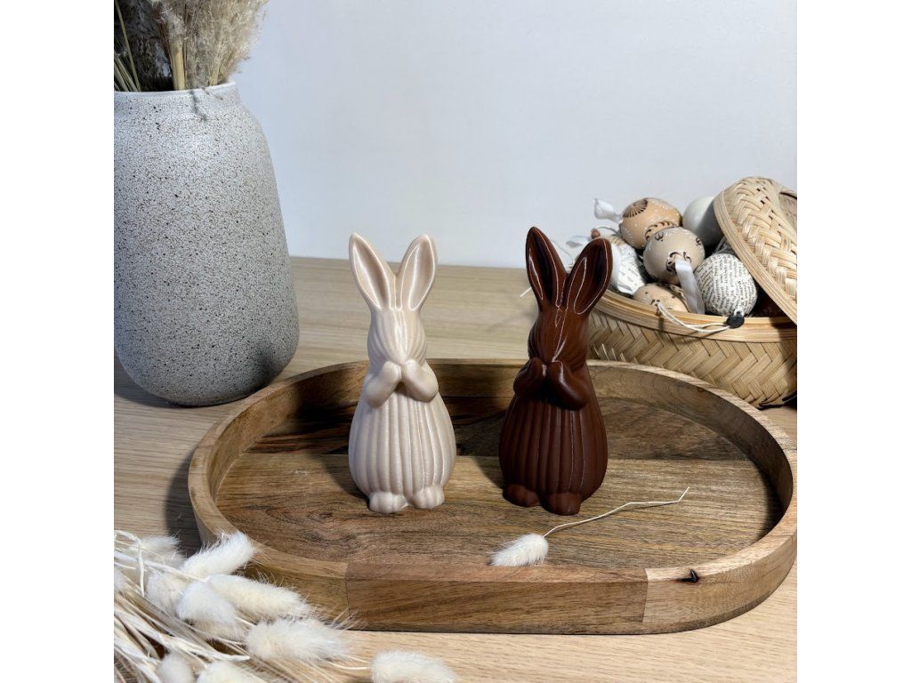 Jeho elegantní tvar a hladké linie působí moderně, zatímco něžný výraz dodává prostoru hřejivost a útulno. Kombinace barev hnědé a champagne navíc krásně ladí s přírodními materiály i jemnými jarními dekoracemi. Skvěle se hodí na poličku, komodu nebo jako součást velikonoční výzdoby. 🌿