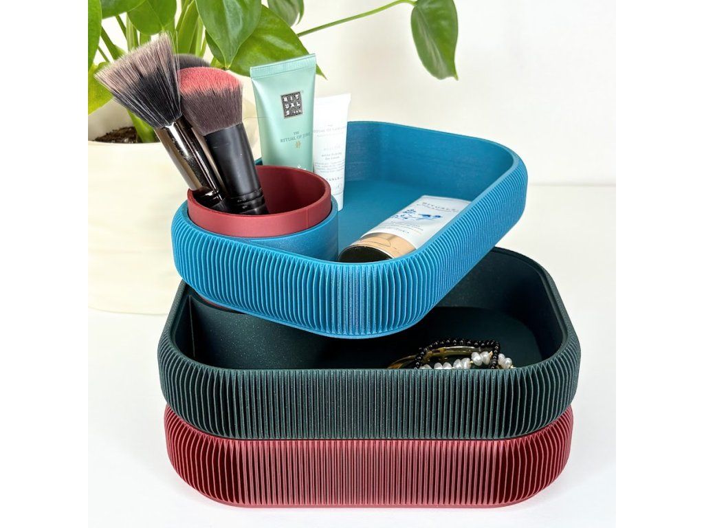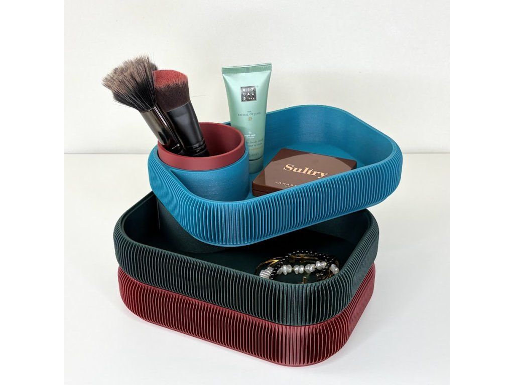 Jemně zaoblené linie a výrazná 3D textura vytváří moderní vzhled, který vynikne v koupelně, na toaletním stolku i v ložnici. Kombinace barev dodává organizéru osobitý charakter a snadno se přizpůsobí vašemu stylu.